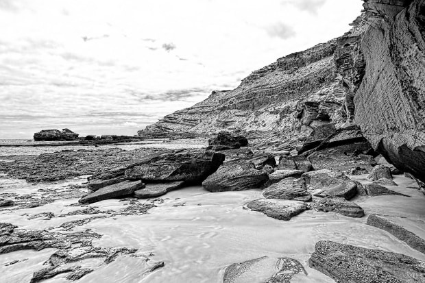 Coffin Bay National Park has many stunning views along its' coastline, but the limestone cliffs at Point Avoid when viewed from the beach are simply spectacular. A black and white conversion emphasises the textures, contrasting forms and composition.