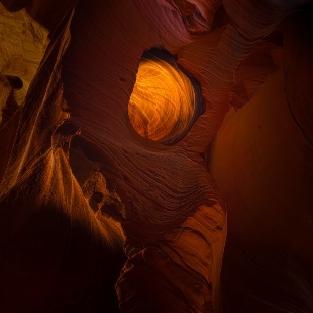 While hiking through the slot canyons i noticed a perfect hole being illuminated from behind creating a portal like glow. A truely remarkable site