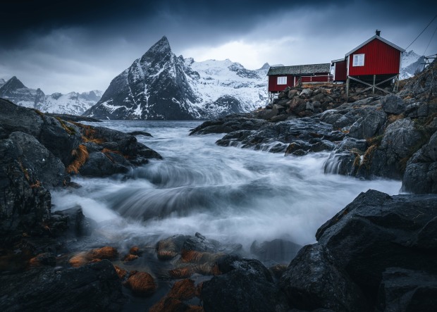 A brooding storm approaches the Red cabins of a popular Norwegian location