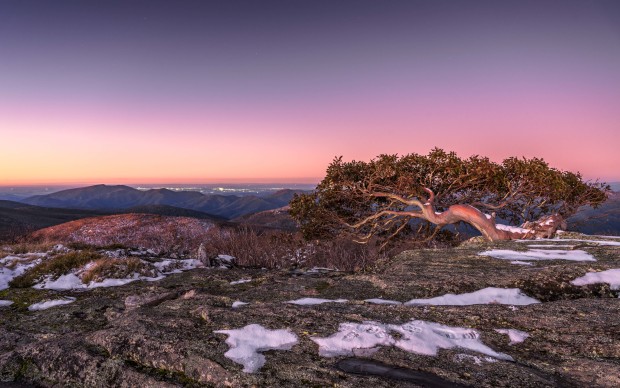 We went to Mt Gingera, the second highest peak in Namadgi National Park, to photograph the last Super Moon of the year but by far the most spectacular image from the evening was the view over the famous Gingera Snow gum to the lights of Canberra below