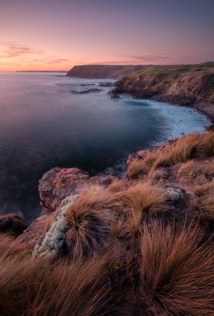 This is usually a windswept area of the coast, facing south on Philip Island. So a windstill night like this was presented a welcome opportunity to capture the tussocks in the fading light.