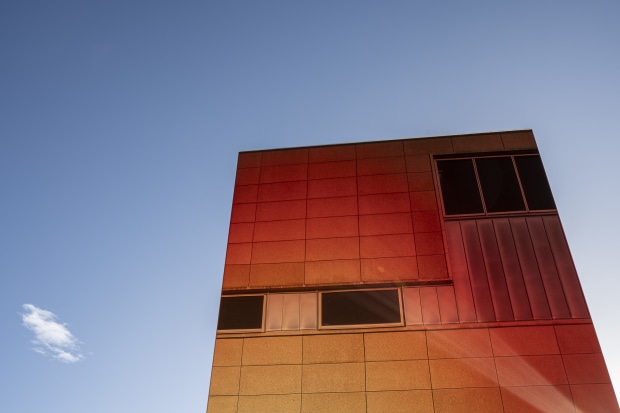 Te Papa (Museum of New Zealand): Red-mirrored block on the forecourt reflects a section of the building