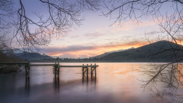 Looking out in the distance, watching as the sun’s golden rays shimmer across the water, their reflections dancing in perfect harmony with the water’s soft flowing current. Lake Hayes – South Island – New Zealand.