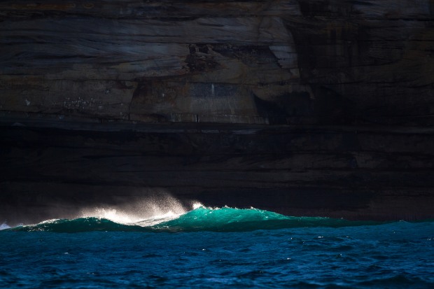 A wave catching last light, refusing to surrender to the darkness enveloping it.