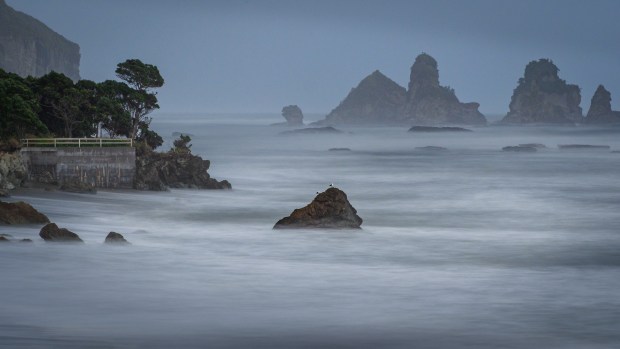 The fickle weather on the Wild West Coast of New Zealand makes light conditions for every photo location a challenge. In this shot of the Motukiekie Rocks the unanticipated mist and haze added some extra drama to the scene. I hope.