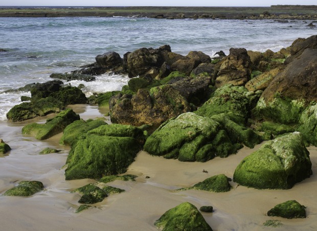 At Mollymook Beach these seaweed clad rocks appear from time to time.