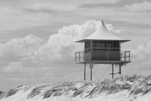 The stretch of clouds, in line with the land below, invoke a sense of calm. We generally look to the sea to experience this sensation, but this time, the beauty opposite the waves caught my attention. The building, a bright yellow & the glowing blue skies 'lit up' in monochrome, showcasing the purity of shooting in black and white.