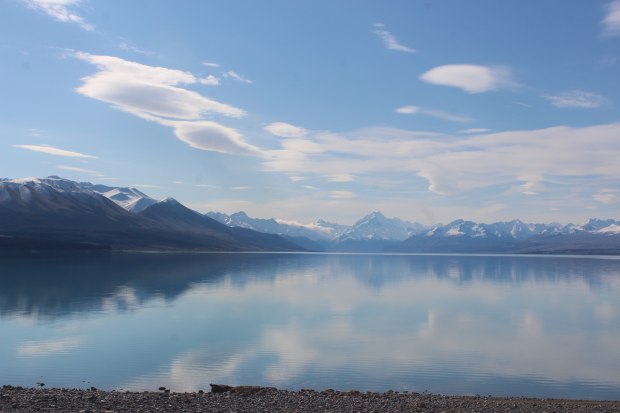 Walking along the banks of Lake Pukaki, South Island, New Zealand.