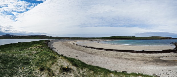 On the west coast of the outer hebridean Isle of Lewis, the salt water of the North Atlantic washes on Shawbost beach, the sand and rock bar holds back the freshwater of Loch A'Bhailea, a boundary between the rough and the smooth, the salt and fresh and the wild and the tamed.
