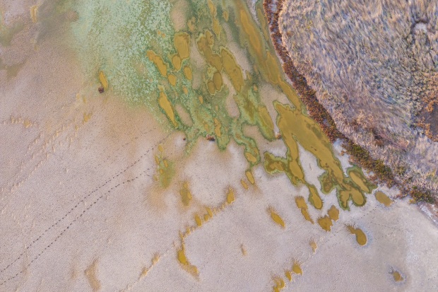 Salt flat patterns that replicate a solar flare from the sun.