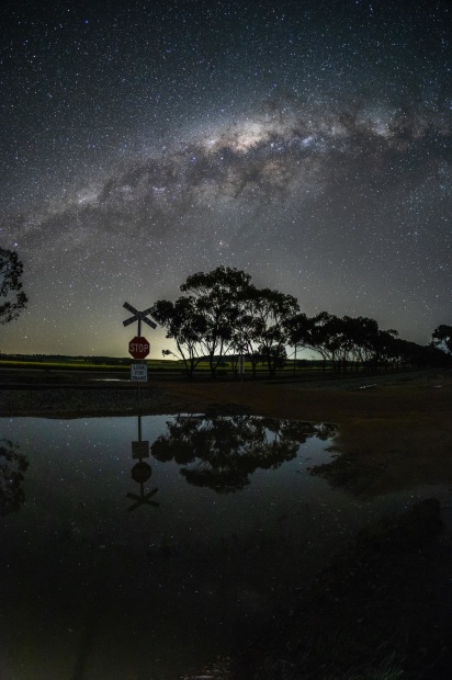A train stop sign stands firm beneath the Milky Way in York, WA. A simple reminder that while the universe stretches endlessly, even the smallest signals shape our journey on Earth.