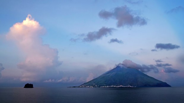 Clearing stoom over the volcanic island of Stromboli, Italy, taken as the night ferry pulled in from Naples.