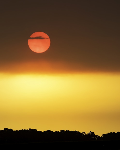 Summer bushfires clogged the skies with smoke producing a fiery sunset