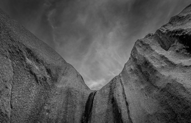In black and white, Uluru becomes less an icon and more an experience—where light carves form and the weight of geological time is felt rather than seen, ripped of its iconic red it's a quiet encounter with an ancient presence beyond colour and spectacle.
