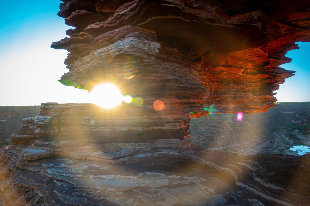 Capturing sunrise at Nature's Window in Kalbarri National Park, Western Australia. I love just as the sun is rising the landscape is flat in tone and colour until the sun hits and the rock face starts to come alive.
