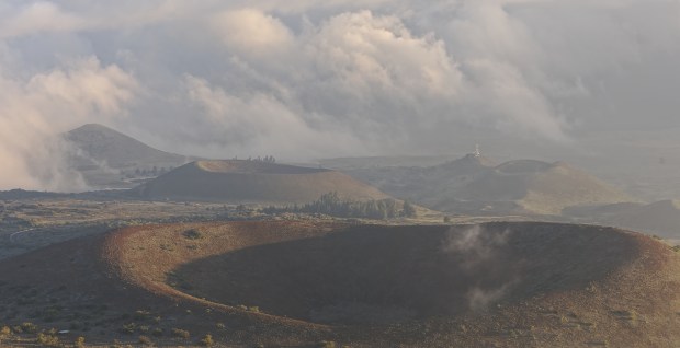 Sunset over the craters on the slopes of the Mauna Kea Volcano, Big Island, Hawaii.