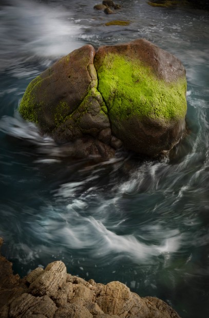 Surging tidal movements passing this huge ocean boulder cause plenty of swirls and patterns which look stunning with a long exposure.