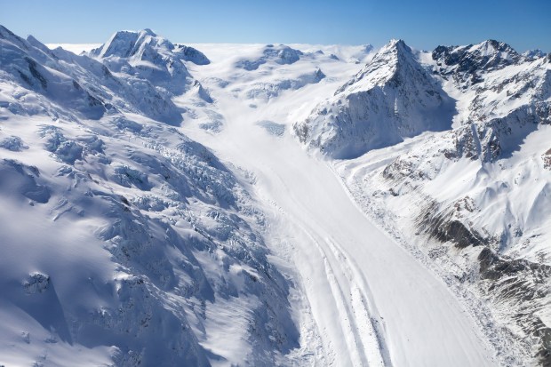 Aerial photograph of the Tasman Glacier in Aoraki / Mount Cook National Park