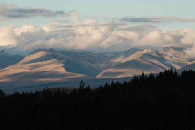 Nature painting watercolour light and shade on the mountains of Lake Tekapo
