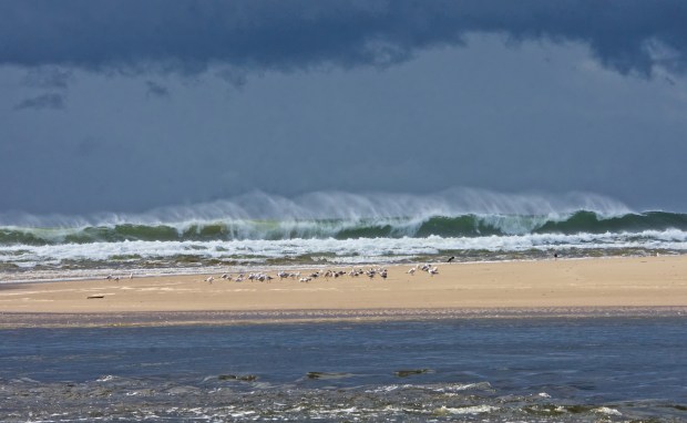 Between the wild surf and the river running to the sea..