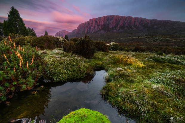The last light on Mount Jeruselum after a day of cloud and rain in the walls of Jerusalem Tasmania, we were spoilt with a burst of all things colour and calm.