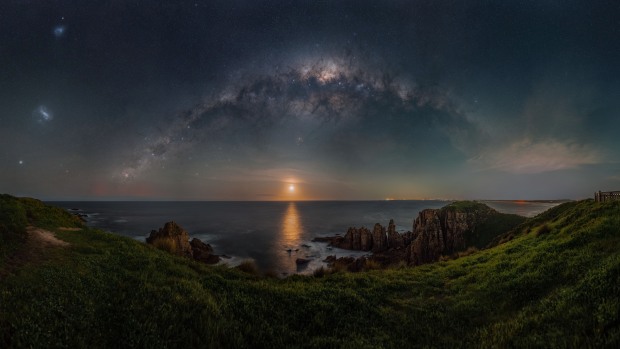The Eye of Night Sky is made up of two essential elements i.e. the moon and the milky way arch. The moon needs to be in the centre of the milky way arch and is close to horizon. The moon phase needs to be in either Waxing Crescent or Waning Crescent when the moon light is not too bright so the milky way is visible. The milky way must be in the right angle to be able to capture a perfect arch. To best align the sky with the foreground, the moon should rise or set between the pinnacles and under the galactic core. There are only a couple of nights in a year when all the elements come together. I have planned to capture this before Covid 19 but due to Covid restrictions and weather permissions, I waited for 3 years before I finally made it in September 2022. This is a panoramic picture made up of 27 images at the same location stitched together. In this image, you can also see Large Magellanic Clouds, Small Magellanic Clouds, and Aurora at the south end the Milky Way.