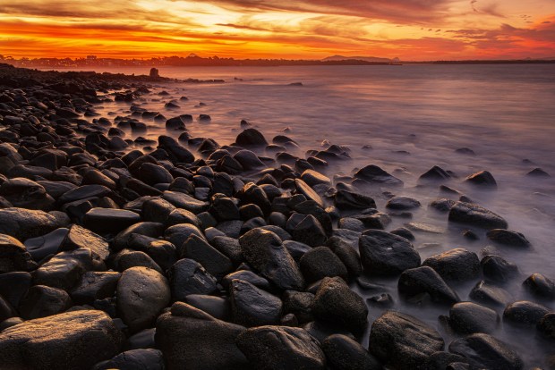 During the sun set over Noosa National Park, the glowing sky reflected upon the smooth pebbles by the shore, while misty waves drifted like a dream. Realizing the contrast between the bright sky and dark stones is so high after several shots, I rushed back to the car to fetch a GND filter, then carefully stepped over the wet rocks, capturing more photos filled with both urgency and excitement, and just three minutes later, the light totally faded. I was still standing there for a while to think back to the very moment in the final stage, I hope this photograph can bring you the same feeling that I experienced – touched by the beauty from grandeur to tranquility.