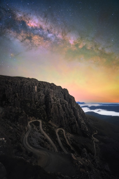 Airglow is both a friend and foe that tints truly dark night skies. Tasmania, owing to its island location and relatively tiny population outside of the three major centres, has some of the darkest skies on the planet; and, as a result, some of the most intense airglow. Paired with a setting Milky Way and the rugged dolerite of Ben Lomond's Jacob's Ladder, the scene exemplifies the benefits of a truly dark sky.