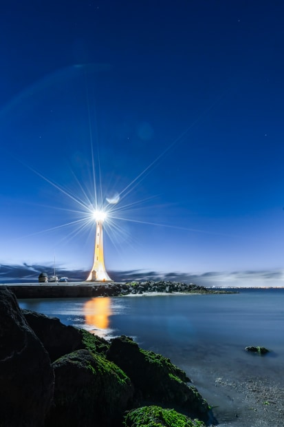 This image was taken in St Kilda. I used long shutter speed to flatten the water which also allowed me to tighten up my aperture to capture light from the lighthouse as a star burst. The rocks used as the foreground element were a bit dark on my first shot so I used the torch on my phone to paint in some detail. I intended the rocks to not only be the foreground element but to also lead the viewers eyes through the frame.