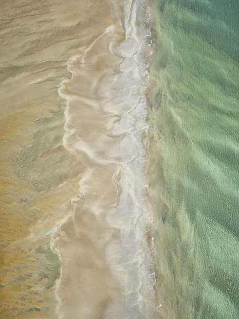 The collision of textures, colours and patterns created by the changing tide at Shark Bay captured from above