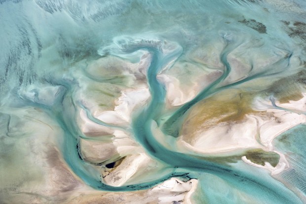 Aerial shot taken over Shark Bay WA. Image of tree suggested by channels in water