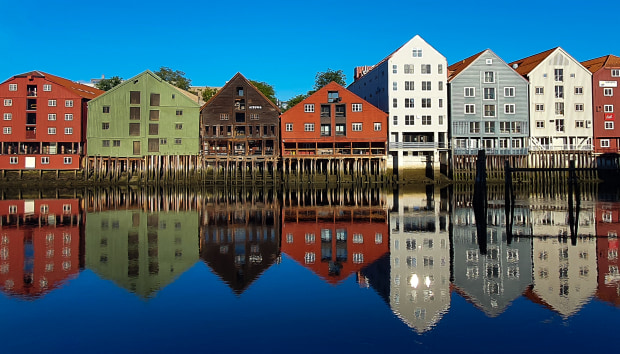 Early morning walk along Nidelva River in Bakklandet, Trondheim