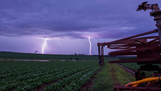 A summer storm rolls in over cultivated farmland, where orderly rows of crops stretch beneath an unsettled sky. In the distance, lightning fractures the horizon, briefly illuminating the land that sustains daily work and quiet routine. The irrigation structure in the foreground stands still and mechanical, a reminder of human effort and control, while the sky asserts its own authority. This image captures a moment of tension between nature and labour—when the land pauses under an immense, unseen force. Under a Charged Sky reflects the fragility and resilience of rural landscapes, shaped equally by human hands and the uncontrollable power of weather.