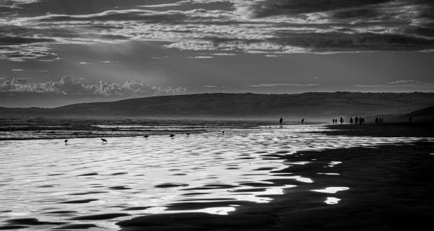 A storm was brewing late in the day at Goolwa Beach. Enough light was breaking through the clouds to highlight the shallows and create silhouttes, but retain the dark foreboding sea.