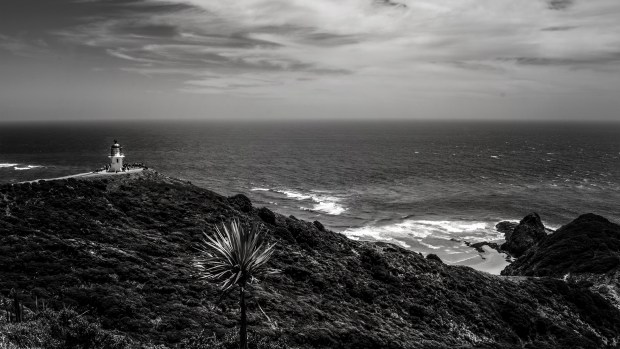 The Cape Reinga Lighthouse at the top of the North Island of New Zealand watching over the ocean.