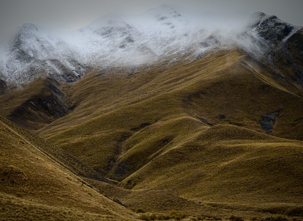 Snow capped hills Lindis Pass, Central Otago, NZ